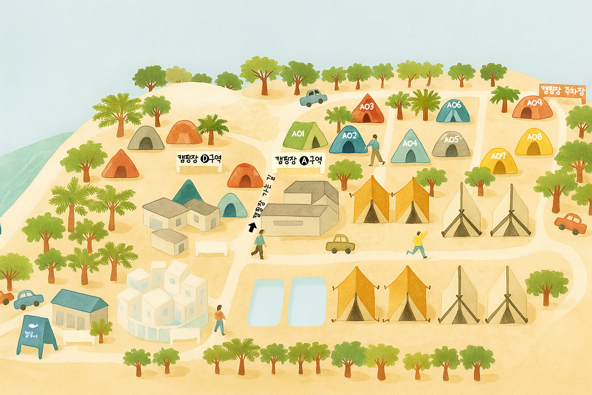 이 곳은 캠핑 사이트로, 캠핑장 A구역과 D구역만 확인해주세요 :D
